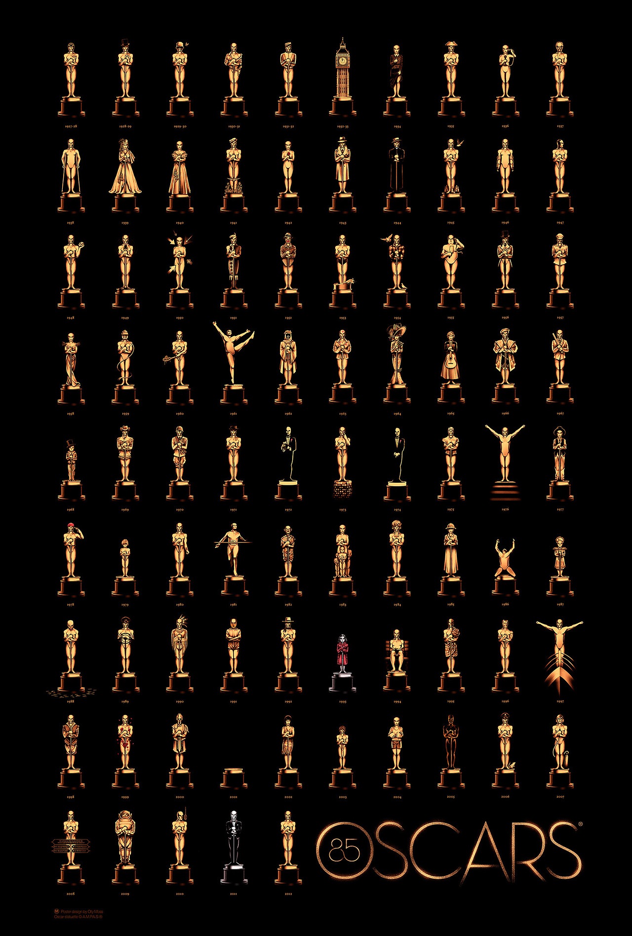 No pôster dessa edição, o artista personalizou 84 estatuetas com uma característica dos 84 filmes vencedores do prêmio de Melhor Filme. É também uma verdadeira diversão aos cinéfilos.